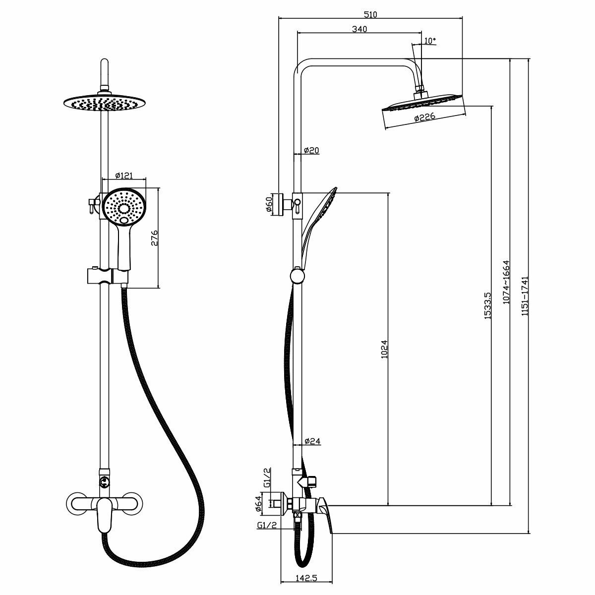 Смеситель Rossinka RS45-45 для душа с регулируемой высотой штанги и лейкой "Тропический дождь" информация: