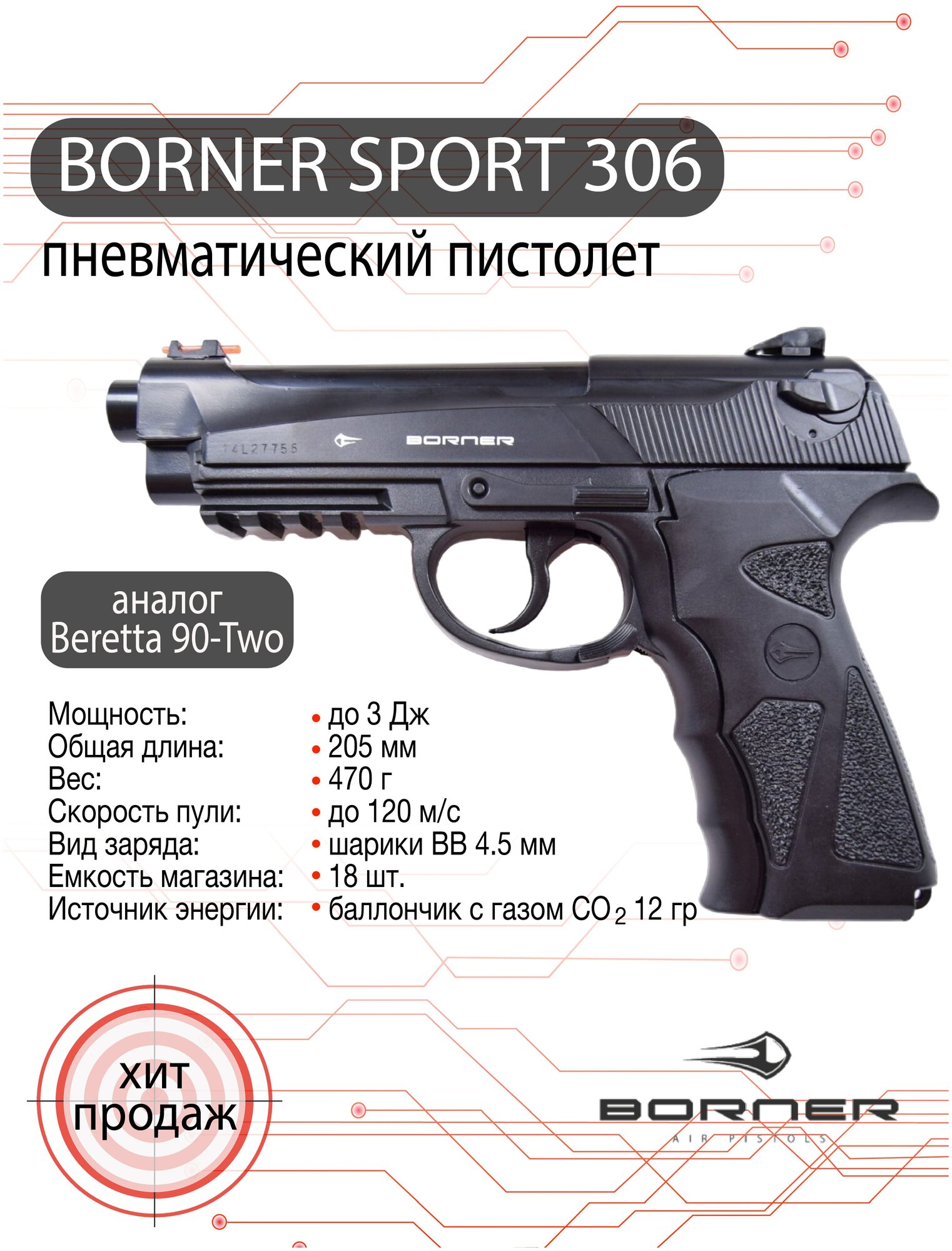 Пневматический пистолет Borner Sport 306 (beretta), калибр 4,5 мм информация: