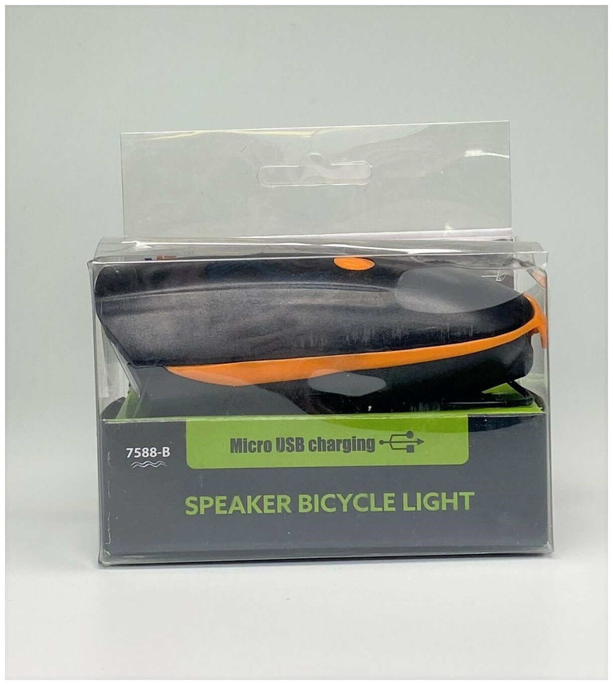 Фонарь для велосипеда с гудком, с оранжевой полосой информация: