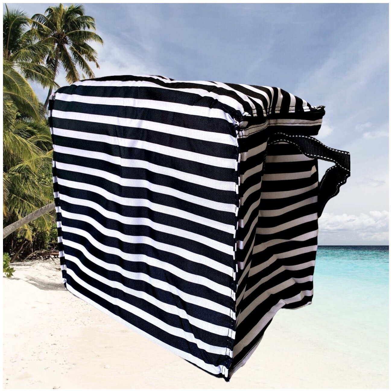 Термосумка 30х28х20 см в черно-белую полоску / Сумка холодильник на молнии и с внешним карманом VITTOVAR информация:
