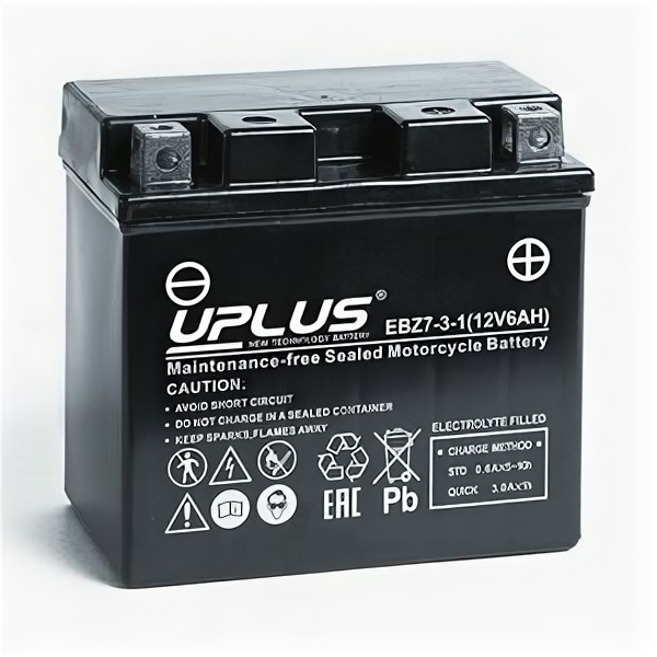 Аккумулятор мото Uplus EBZ7-3-1 (YTZ7S, YTX5L-BS) AGM информация: