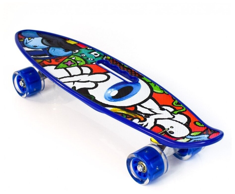 | Дополнительная информация | Скейтборд с ручкой для детей и подростков / пенни борд / скейт со светящими колесами 58х16 см / синий глаз; уровень подготовки: начинающий, средний, высокий; тип установки подвески: стандартный; подробная комплектация: Скейтборд с ручкой-1 шт, колесная пара-2 шт, крепления- 16 шт; материал подвески: алюминий |