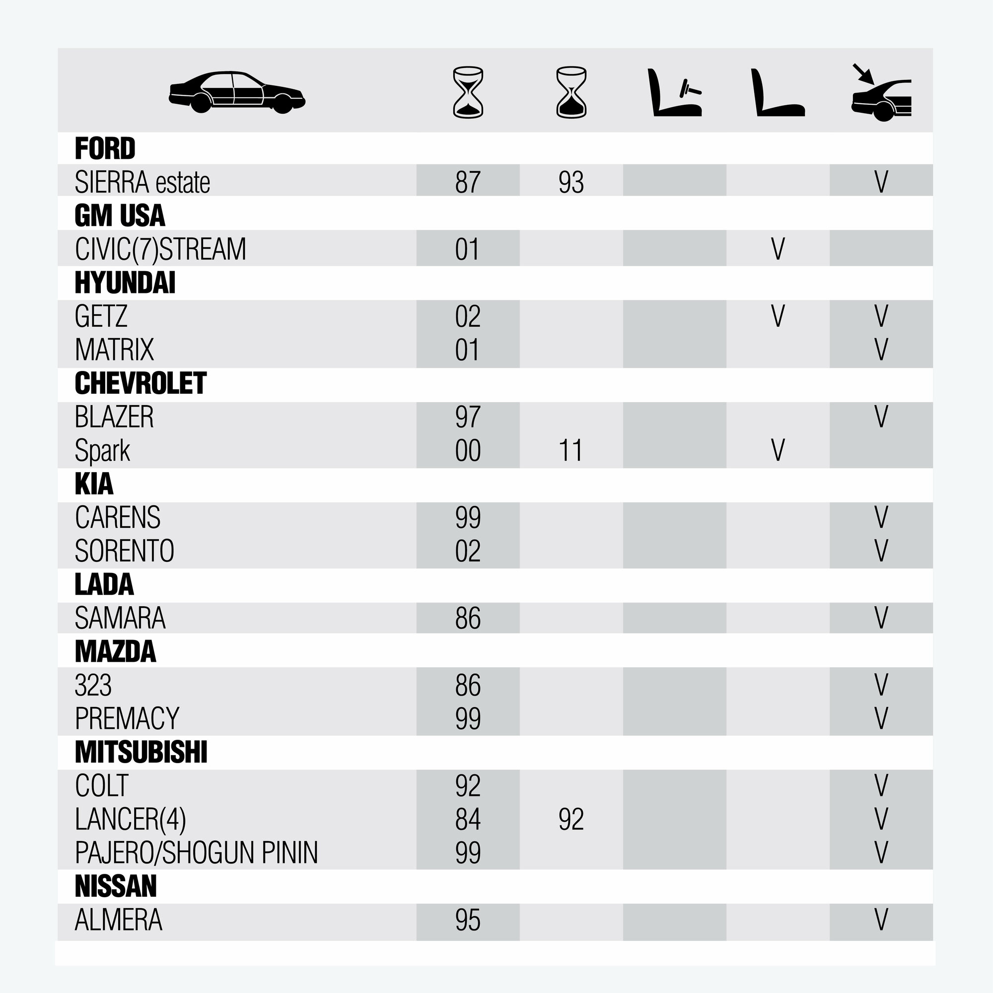| Модель автомобиля | Для всех моделей |