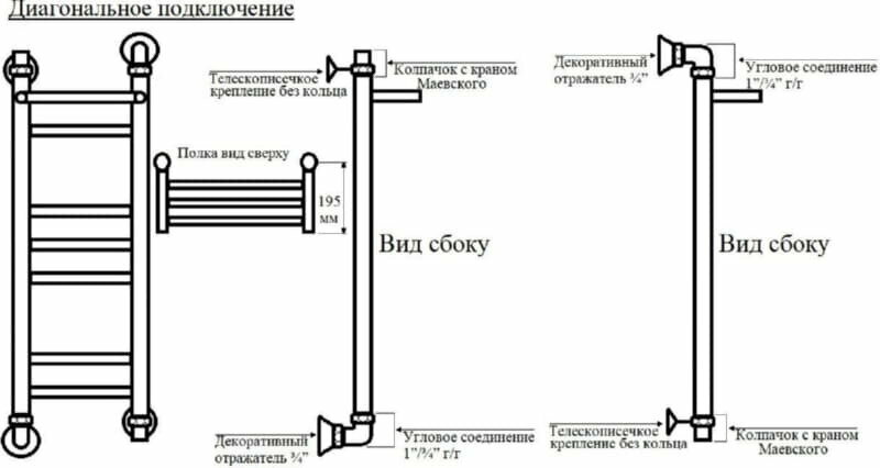 Полотенцесушитель Водяной узкий с полкой Di Kron, модель Premium-T 800х400 боковое подключение 50 см слева угловое