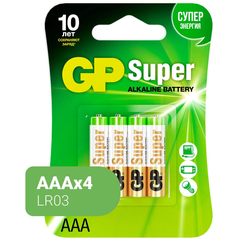 Батарейки GP Super AAA/LR03/24A алкалин., бл/4 , 1 шт. информация: