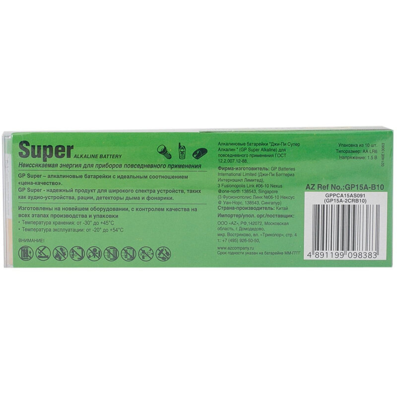 Батарейки GP Super, AA (LR6,15А), алкалиновые, пальчиковые, комплект 10 шт., в пленке, 15A-2CRB10, GP 15A-2CRB10 - 1 шт.