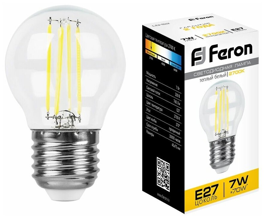 Отзывы на Лампа светодиодная LED 7вт Е27 теплый шар FILAMENT | код. 25876 | FERON (7шт.в упак.)