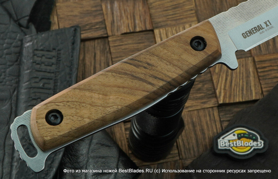 Недорогой нож Kizlyar Supreme RedSteel General X1, сталь Aus-8, stonewash, рукоять корень ореха информация: