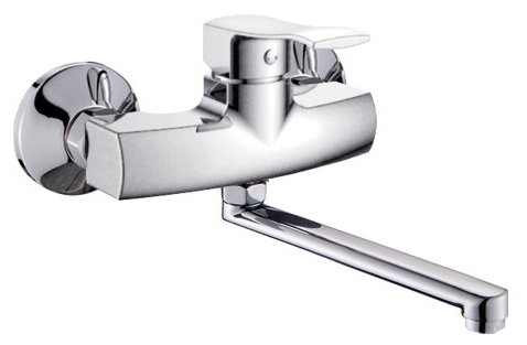 Смеситель на раковину настенный Эверест B46-350 с круглым поворотным изливом, кран-буксы 1/2", хром
