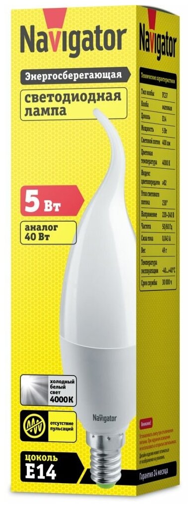 Светодиодная лампа Navigator 61 026 NLL-P-FC37-5-230-4K-E14-FR, 10 шт информация: