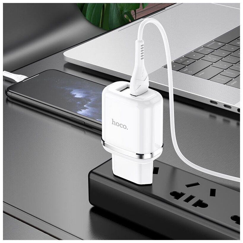 Зарядное устройство HOCO N4 Aspiring 2/USB + Кабель USB-Lightning, 2.4A, белый