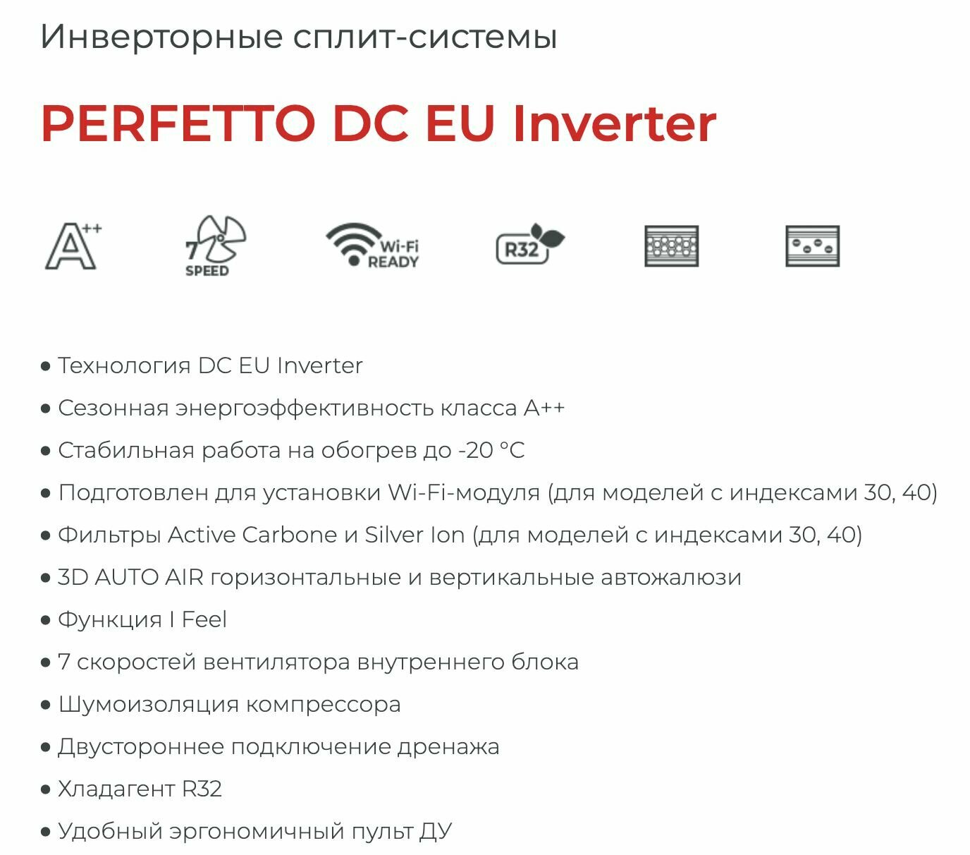 Настенный кондиционер Royal Clima PERFETTO DC EU INVERTER RCI-PF40HN/IN/RCI-PF40HN/OUT информация: