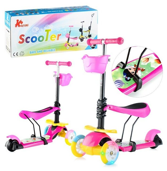 10 цен на Самокат M618X-1 светло-розовый, PU, в коробке