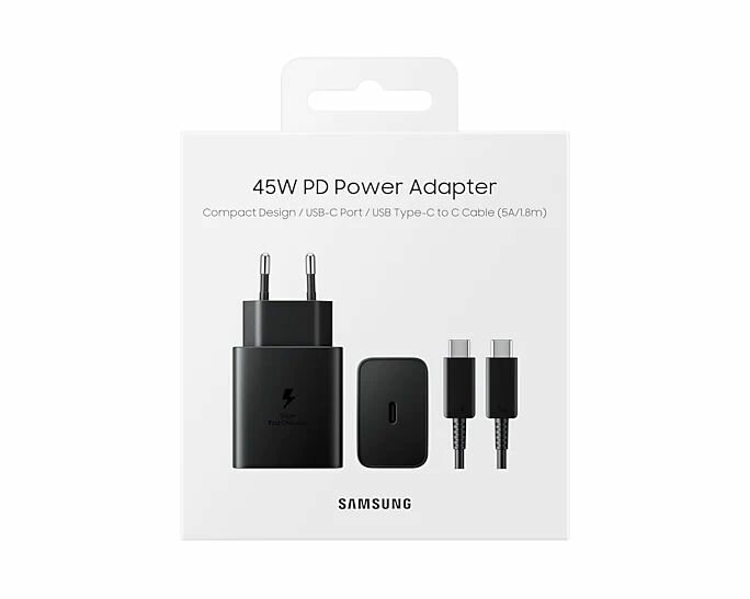 Сетевое зарядное устройство Samsung EP-T4510 45 Вт с кабелем 1.8м для смартфона, смарт-часов, ноутбука информация: