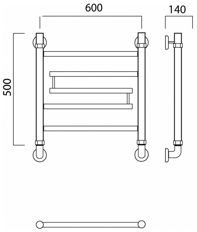 Водяной полотенцесушитель Роснерж Скоба L102011 100x60 с боковым подключением 600 групповой