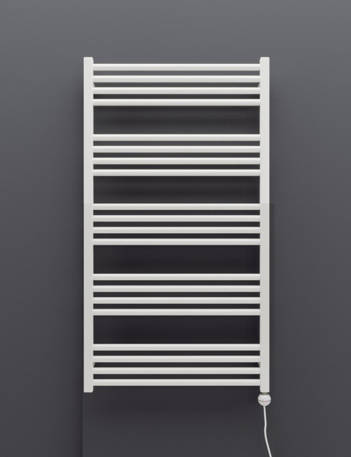 Полотенцесушитель дизайнерский электрический, профильный BAU Stella 8х80, 2 коллектора, 3 крючка (Белый DB-0071)