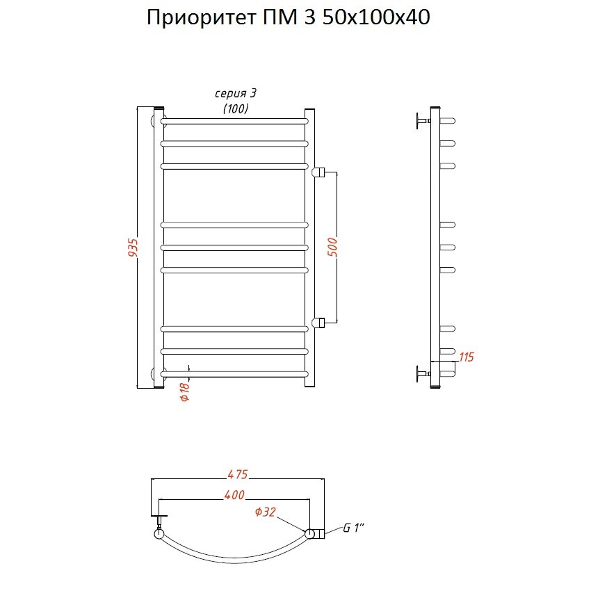 Полотенцесушитель водяной Тругор Приоритет ПМ 3 43x50x100 информация: