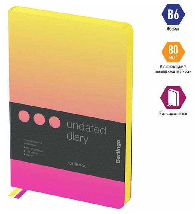 Ежедневник недатированный Berlingo B6, 136 листов, кожзам, "Radiance", желтый-розовый, градиент (UD0_93601)