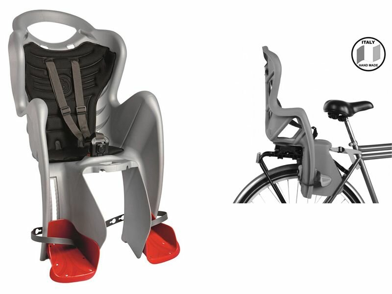 BELLELLI Сидение заднее Mr Fox Clamp, серебристое с черной вставкой, до 22кг информация:
