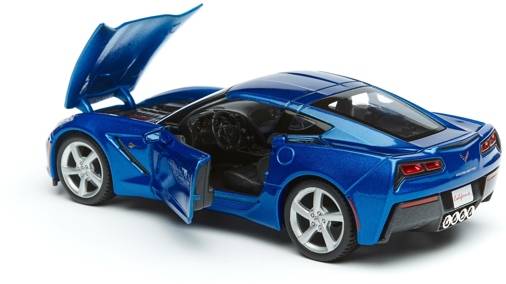 Машинка металлическая Chevrolet Corvette Stingray Coupe 2014, открывающиеся двери и капот, вращающиеся резиновые колеса, масштабная коллекционная модель Maisto 1:24, синяя, Шевролет