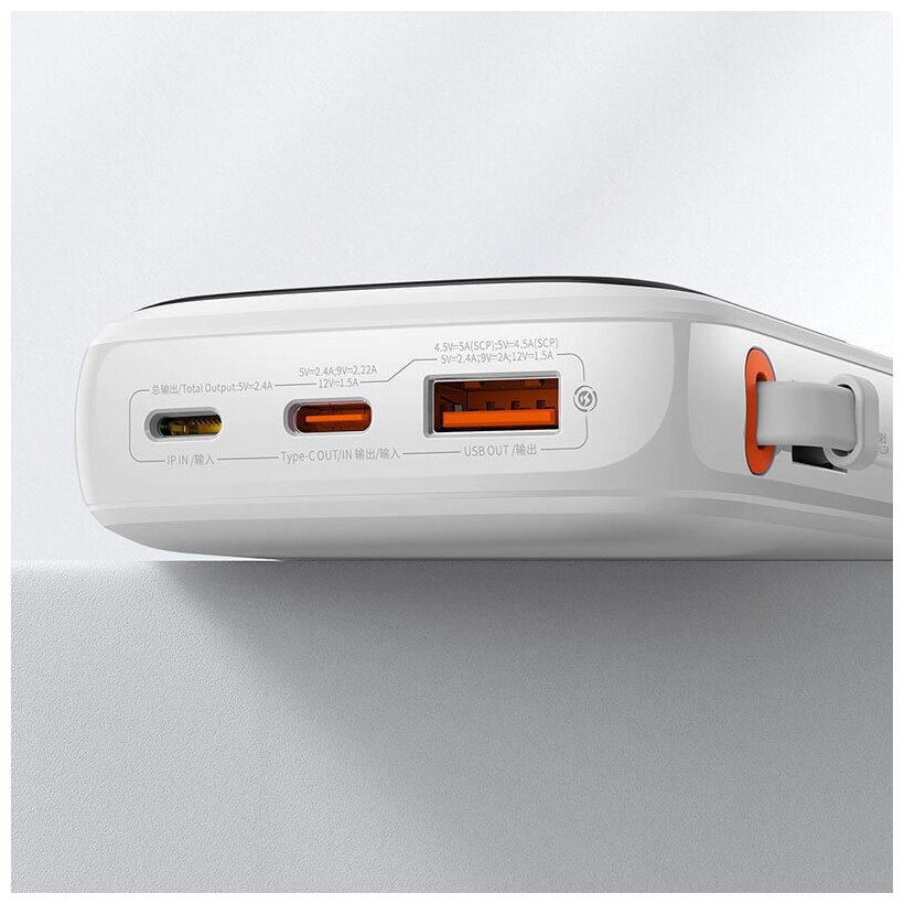 Портативный аккумулятор BASEUS Qpow Pro Digital display fast charge iP Edition,10000 mAh, 20W, с кабелем Lightning, Белый информация: