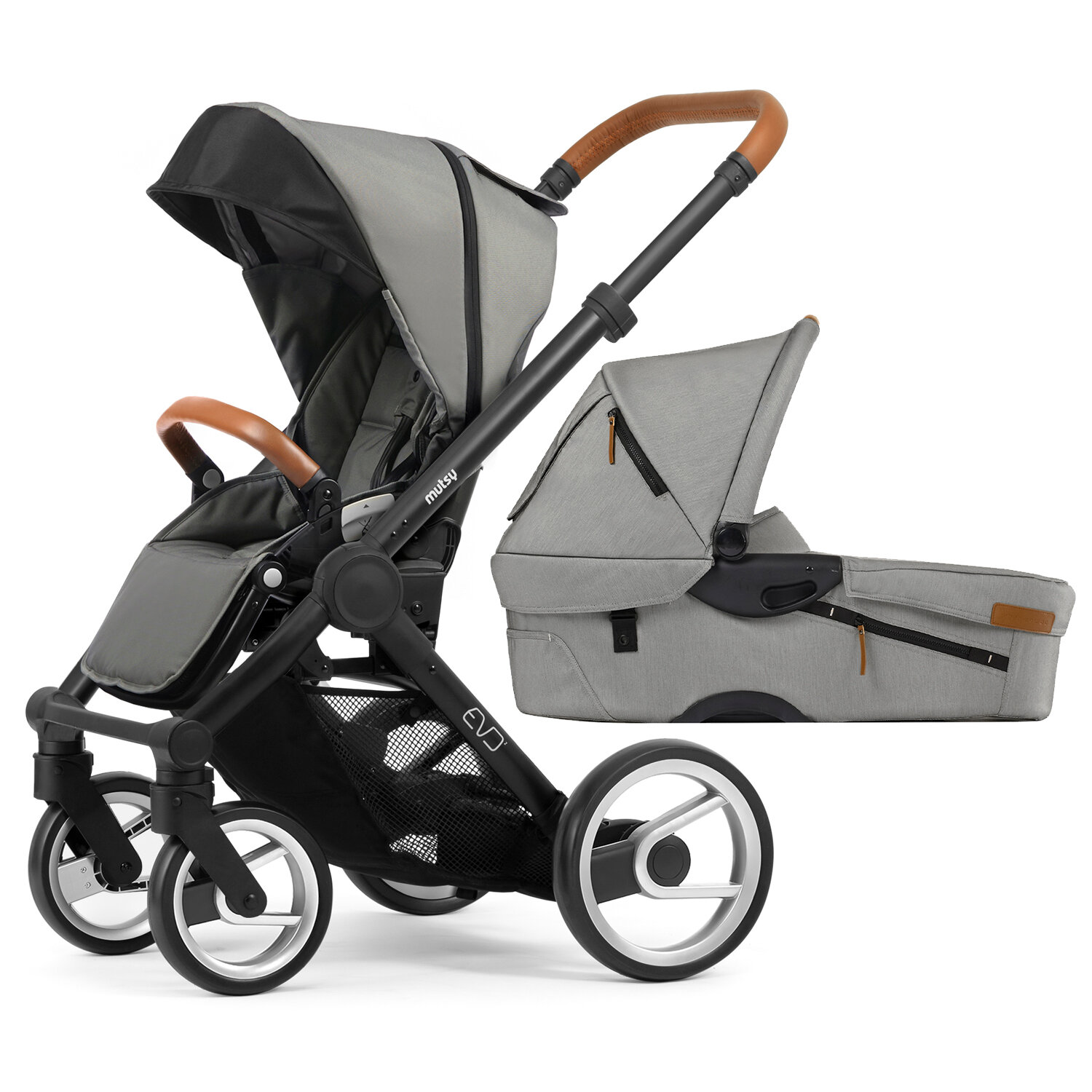 10 цен на Коляска 2в1 Mutsy Evo Urban Nomad Light Grey шасси Cognac grip black в комплекте дождевик, подстаканник,москитная сетка