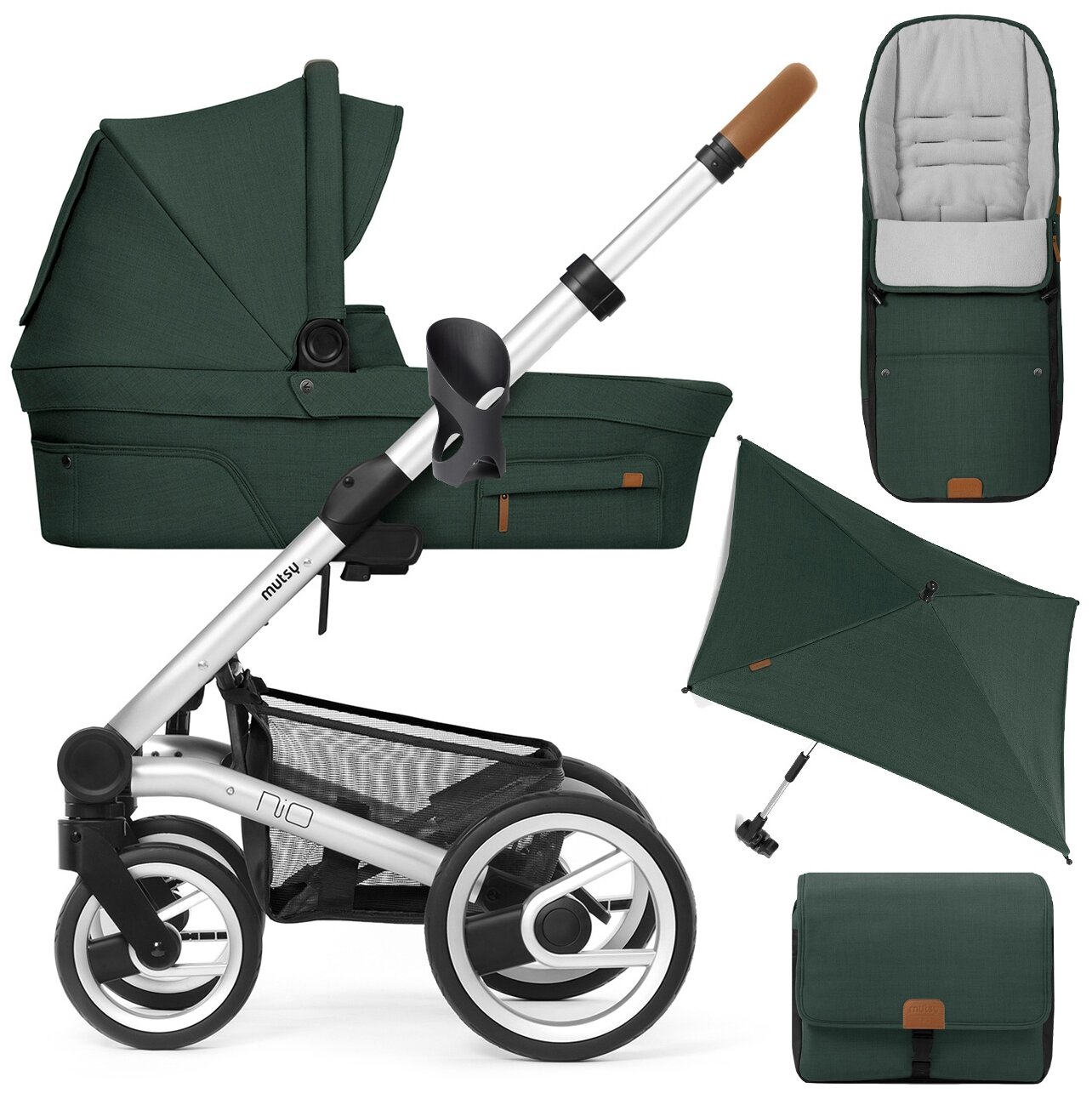 Коляска 2в1 Mutsy Nio Adventure Pine Green/Cognac grip black в комплекте сумка, конверт, зонт, подстаканник