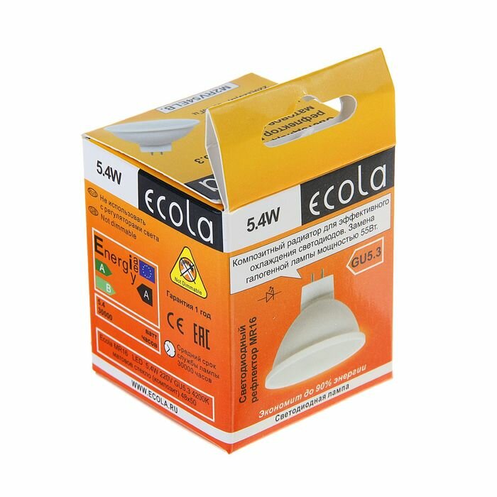 Отзывы на Ecola Лампа светодиодная Ecola, 5.4 Вт, GU5.3, 4200 K, дневной белый, матовое стекло