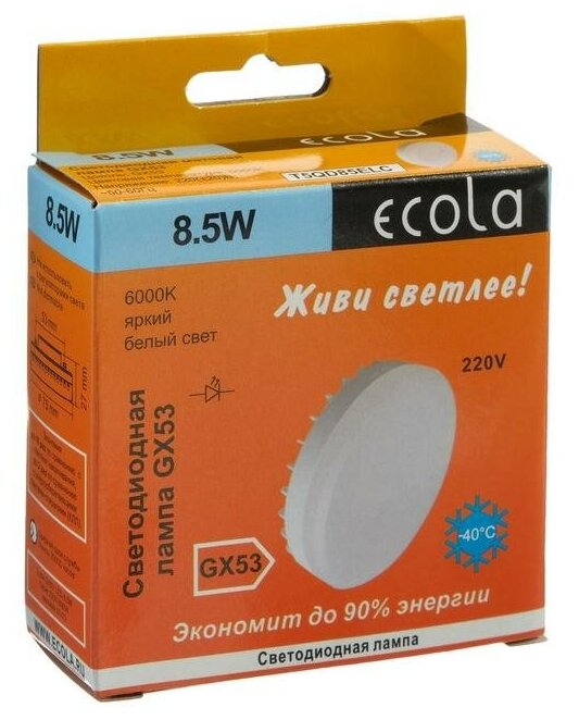 Ecola Лампа светодиодная Ecola, 8.5 Вт, GX53, 6000 К, 220 В, 27x75 мм, матовая информация: