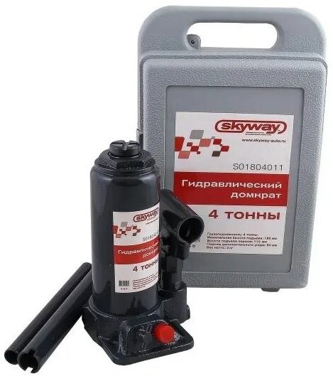 Отзывы на Домкрат бутылочный (4 т) (180-350 мм) "SKYWAY" (с клапаном в кейсе)