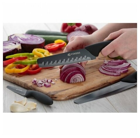| Типы ножей в наборе | нож для овощей, нож сантоку, универсальный нож, шеф-нож |