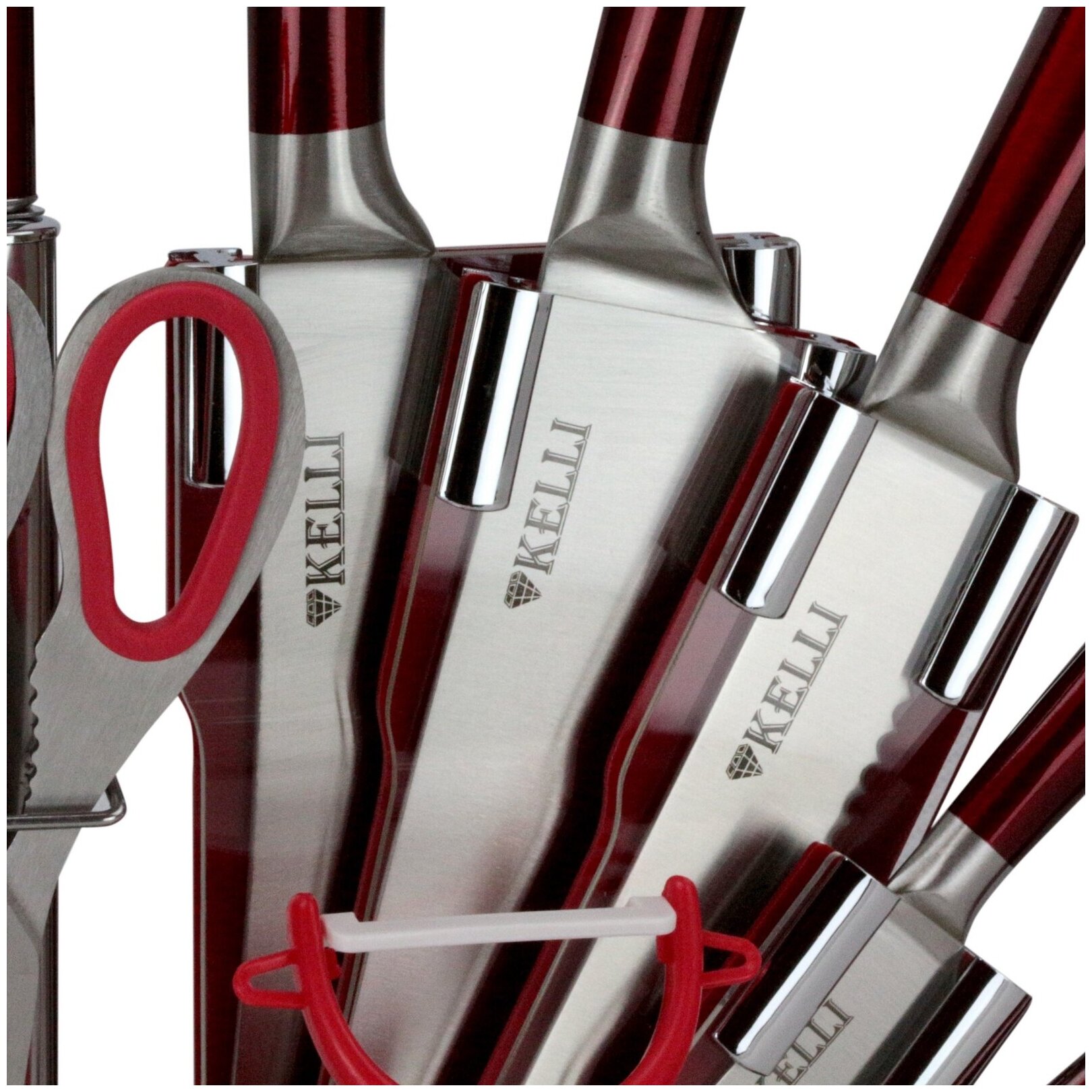 10 цен на Ножи Kelli KL-2084 титановые 9пр красная ручка