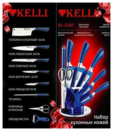 10 цен на Ножи Kelli KL-2107 9 предметов синие ручки