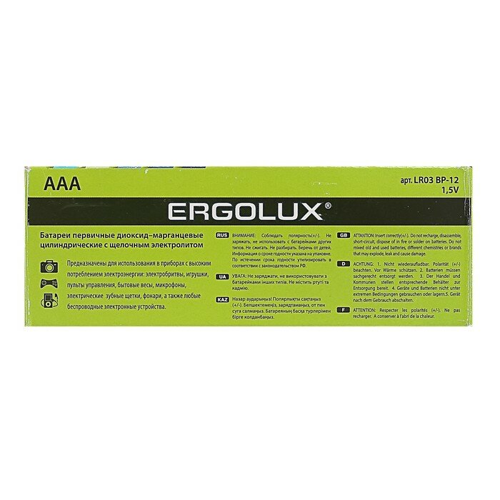 Ergolux Батарейка алкалиновая Ergolux, AAA, LR03-12BOX (LR03 BP-12), 1.5В, набор 12 шт. информация: