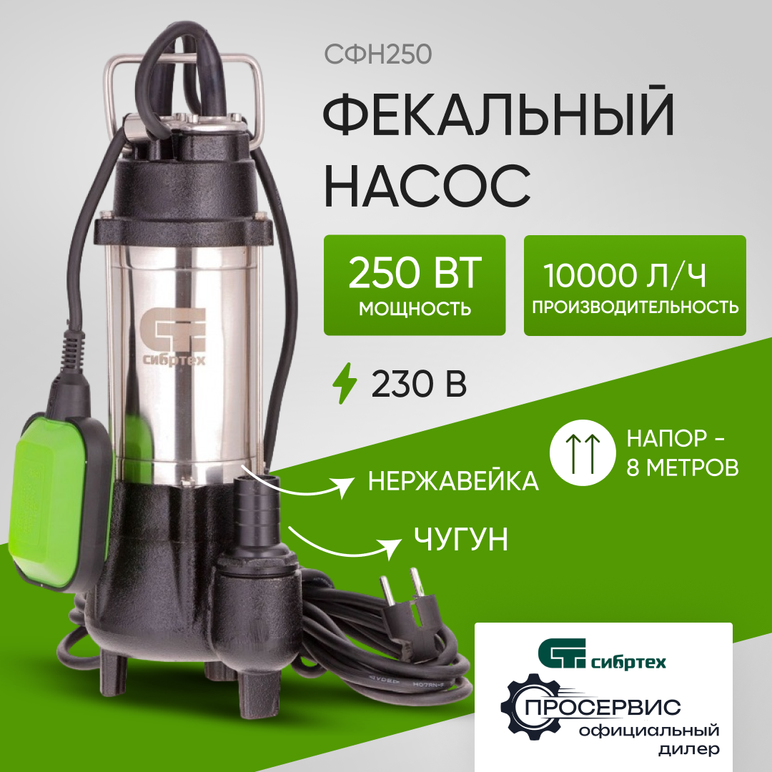 Отзывы на Фекальный насос СФН250, 250 Вт, напор 8 м, 10000 л/ч// Сибртех