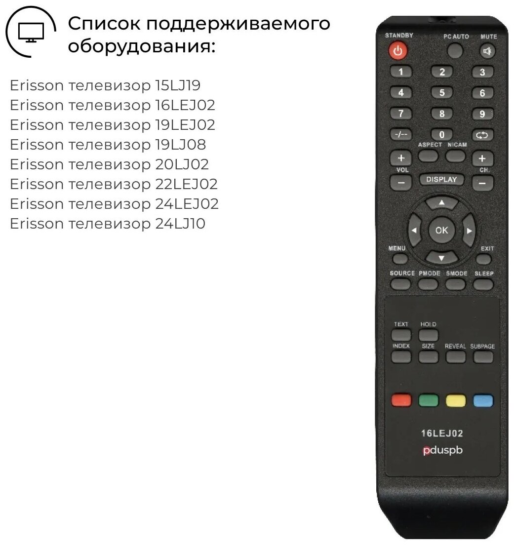 Пульт PDUSPB для телевизора Erisson 16LEJ02 (19LEJ02) информация: