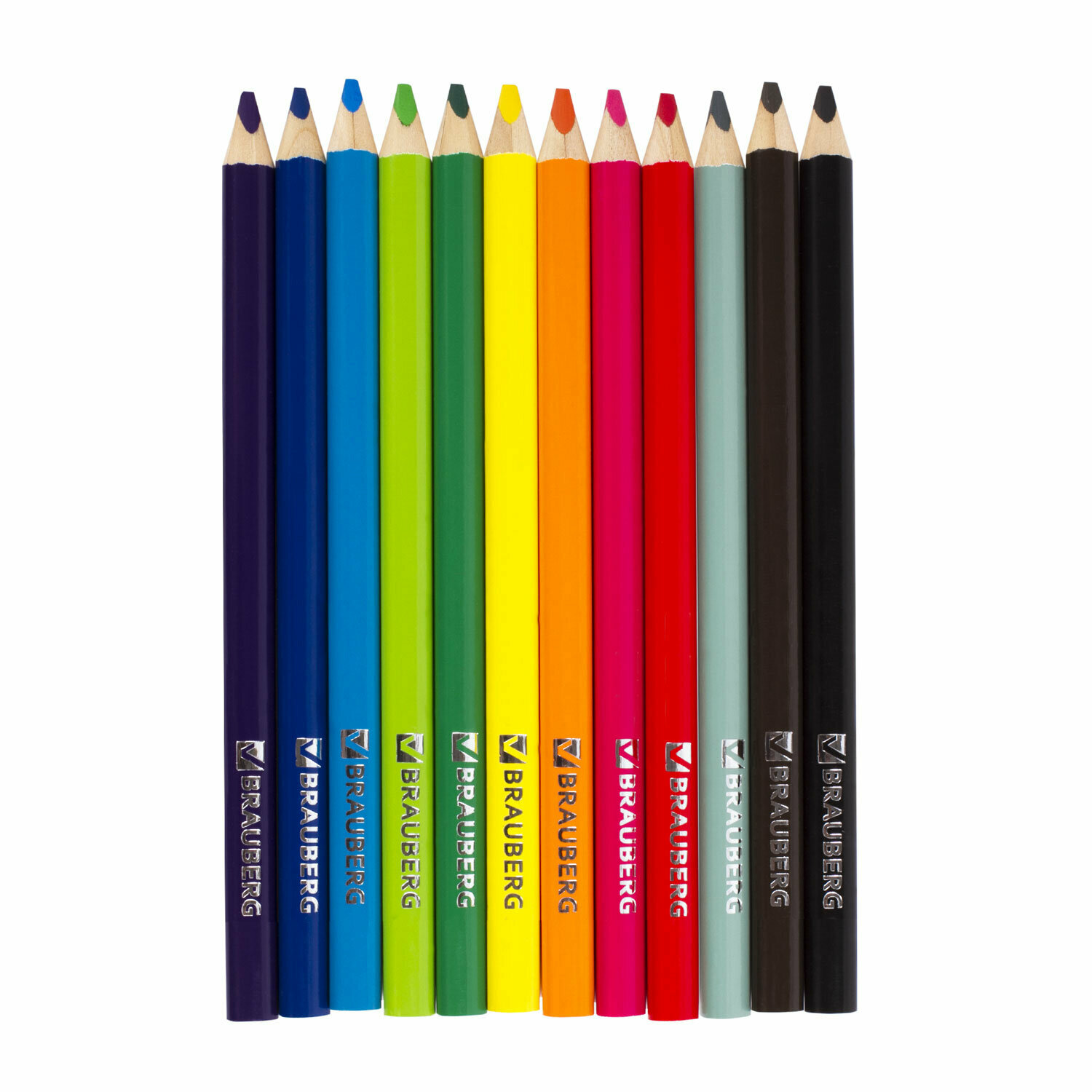 10 цен на Карандаши цветные утолщенные BRAUBERG, 12 цветов, трехгранные, картонная упаковка, 180836
