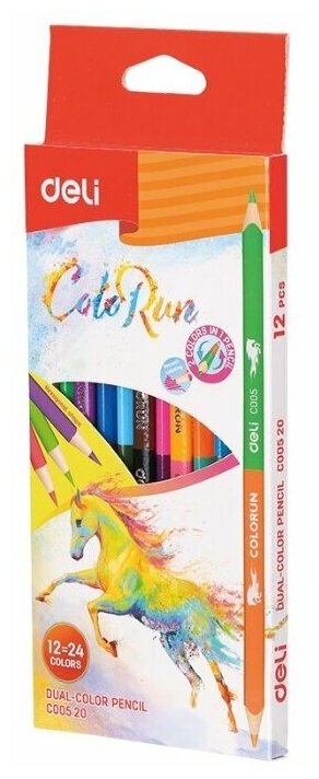 Отзывы на Карандаши цветные Deli EC00520 ColoRun двухцвет. липа 24 цвета коробка/европодвес (12 штук)