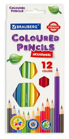 10 цен на Карандаши цветные BRAUBERG PREMIUM, 12 цветов, шестигранные, грифель мягкий 3,3 мм, 181656 2 уп