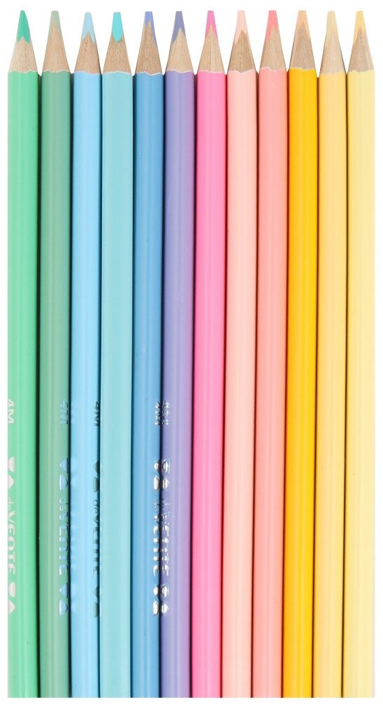 deVENTE Карандаши 12 цветов, deVENTE Trio Mega Soft Pastel, трехгранный корпус, супер мягкие, 4M, грифель d-3мм, пастельные цвета