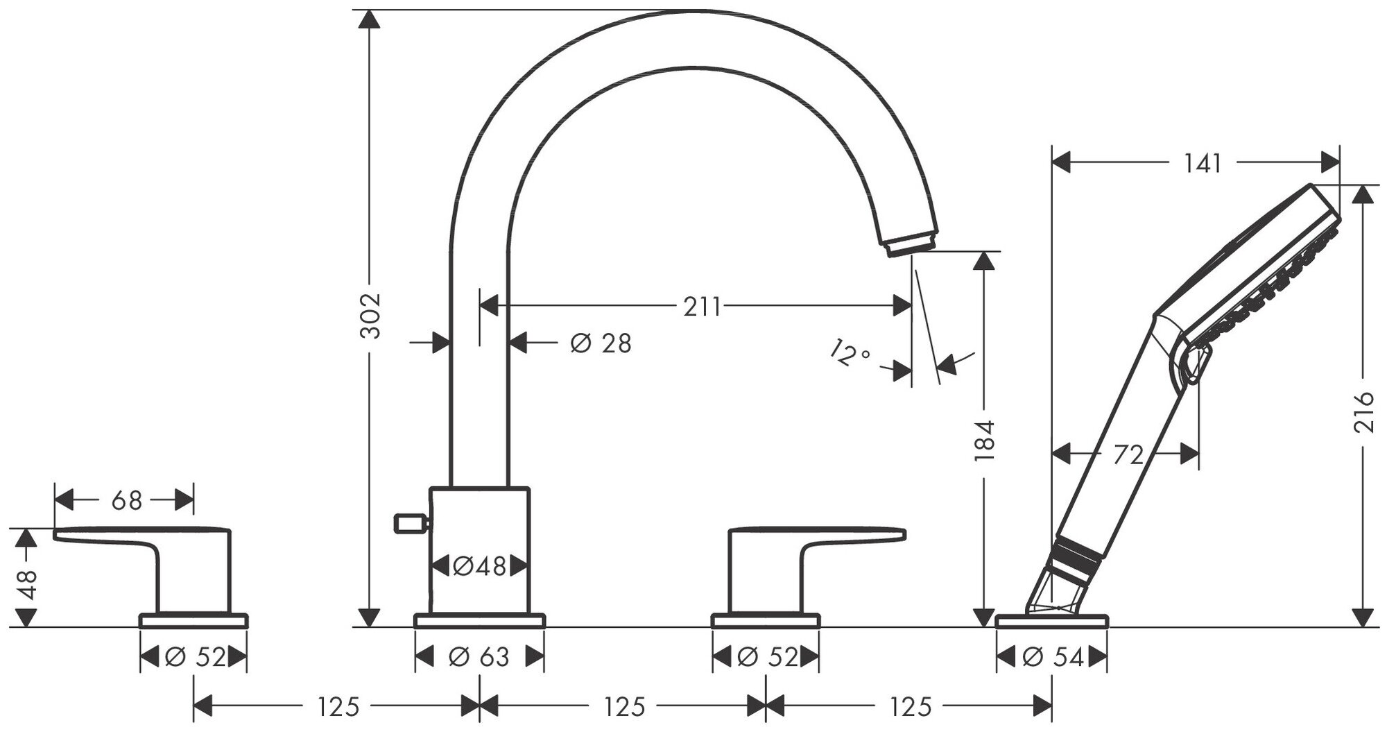 Смеситель для ванны hansgrohe Novus 71043000, рычажный