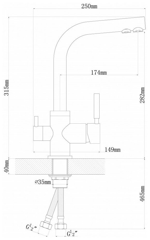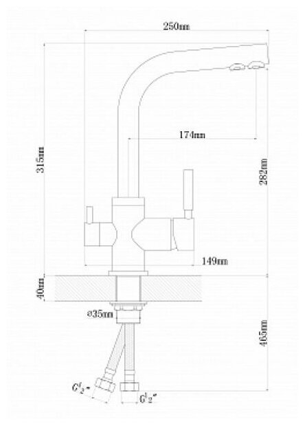 Смеситель для кухни с подключением к фильтру с питьевой водой из нержавеющей стали SUS304 Calorie CAL50116-3