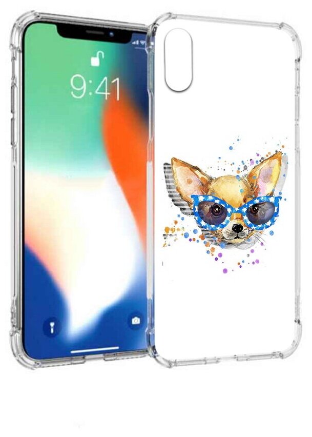 Чехол задняя-панель-накладка-бампер MyPads чихуа-хуа в очках для iPhone X/XS/10 противоударный информация: