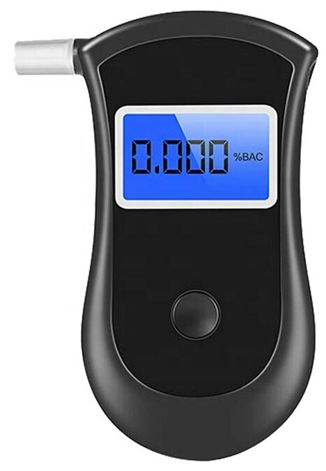 Алкотестер профессиональный портативный с мундштуком и цифровым дисплеем на батарейках.