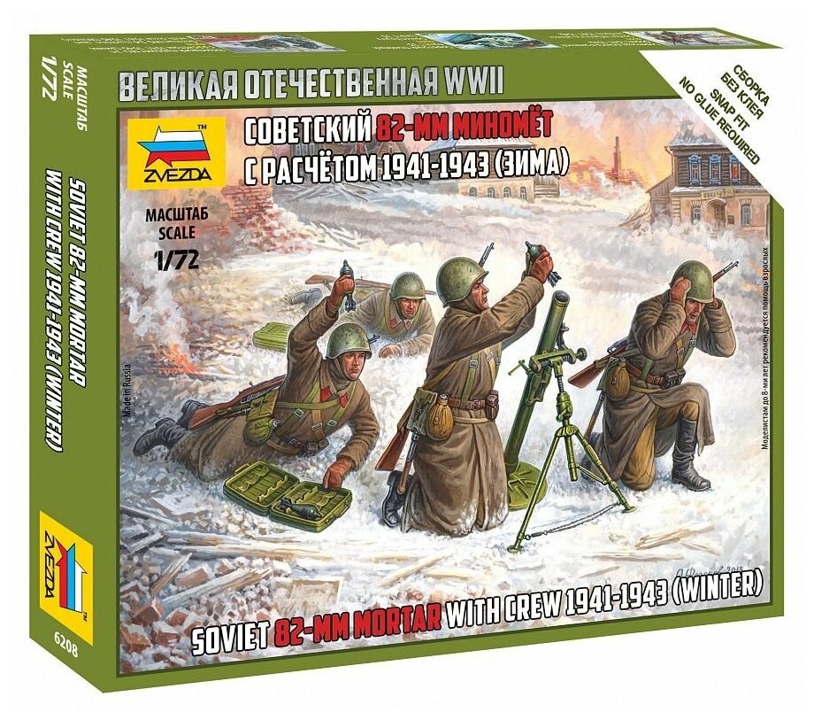 Сборные солдатики ZVEZDA Советский 82-мм миномет с расчетом (зима), 1/72, ZV-6208