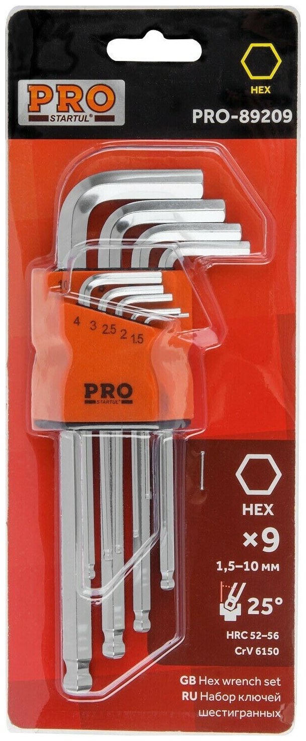 Набор ключей шестигранных 1,5-10 мм 9 предметов длинных с шаром PRO STARTUL (PRO-89209) информация:
