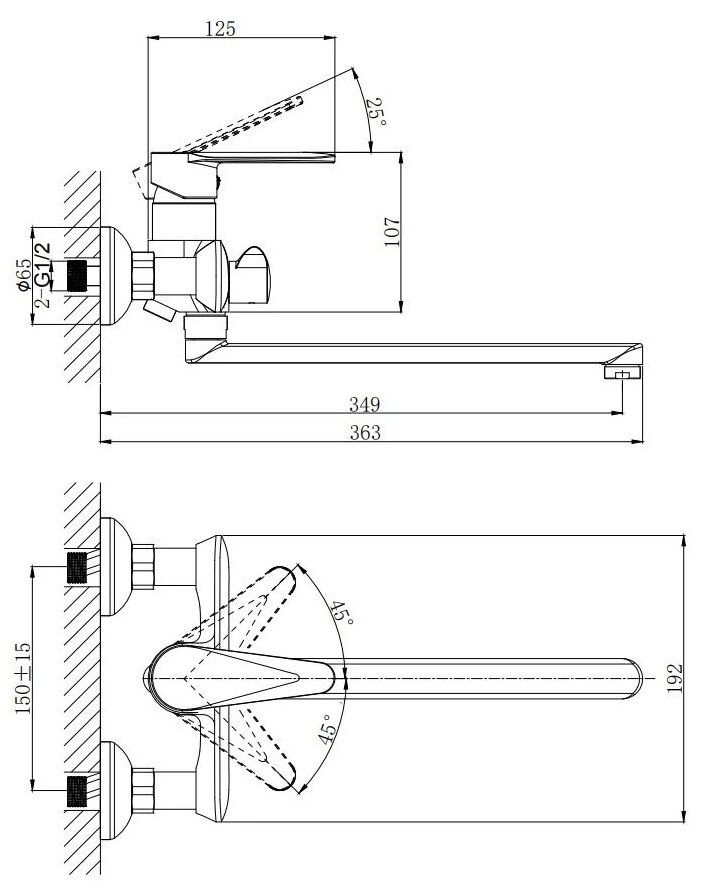 | Длина излива | 349 мм |
