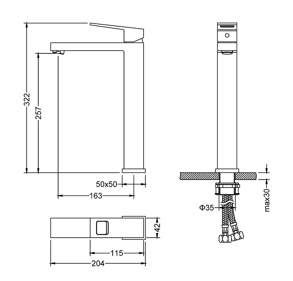 | Комплектация | смеситель - 1 шт. гибкая подводка - 2 шт. набор креплений - 1 шт. инструкция - 1 шт. |