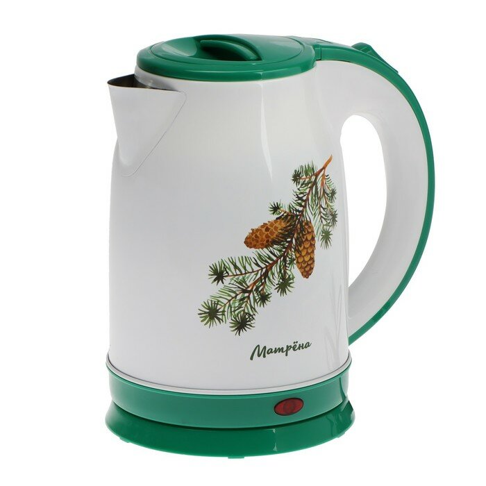 Чайник электрический матрёна MA-120, металл, 1.8 л, 1500 Вт, бело-зелёный с рисунком "Шишки" информация: