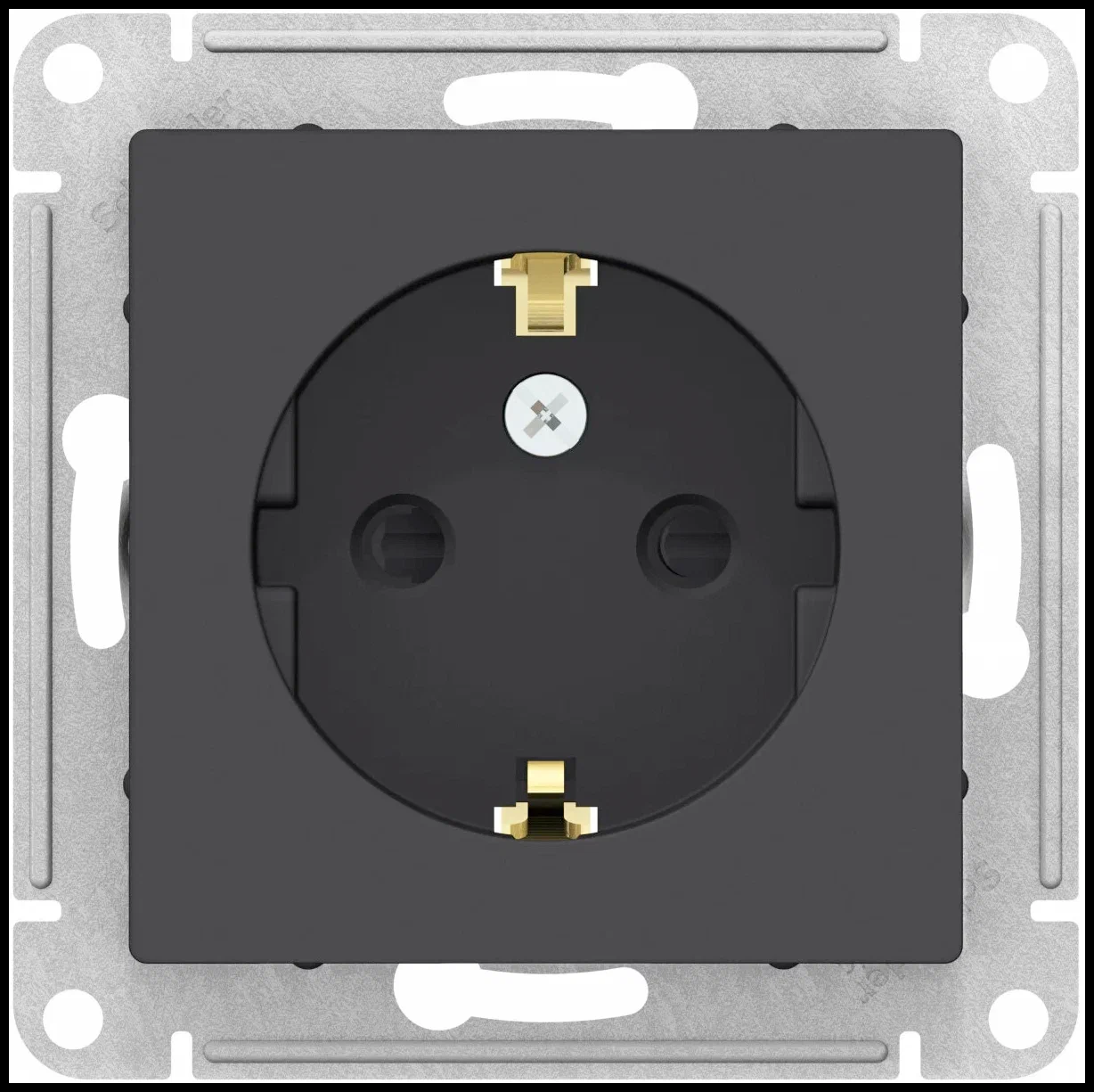 Розетка ATLASDESIGN, скрытый монтаж, с заземлением, со шторками, карбон | код. ATN001045 | Schneider Electric (5шт.в упак.) информация: